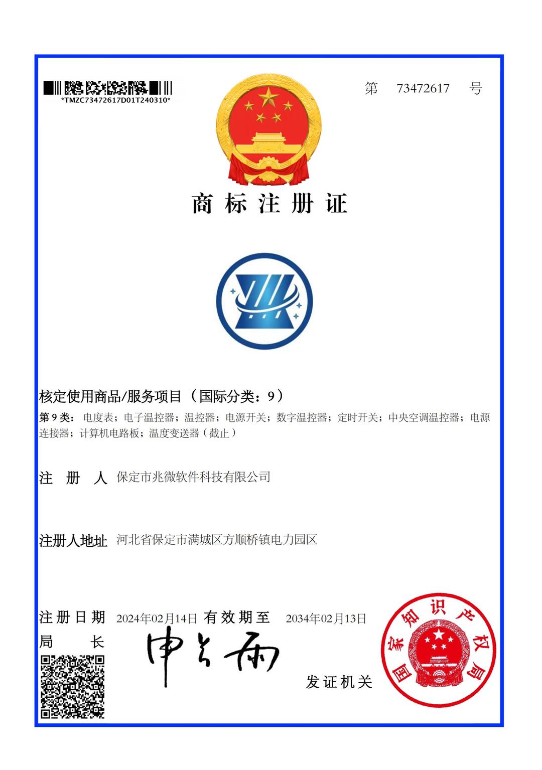 兆微商标注册证_00